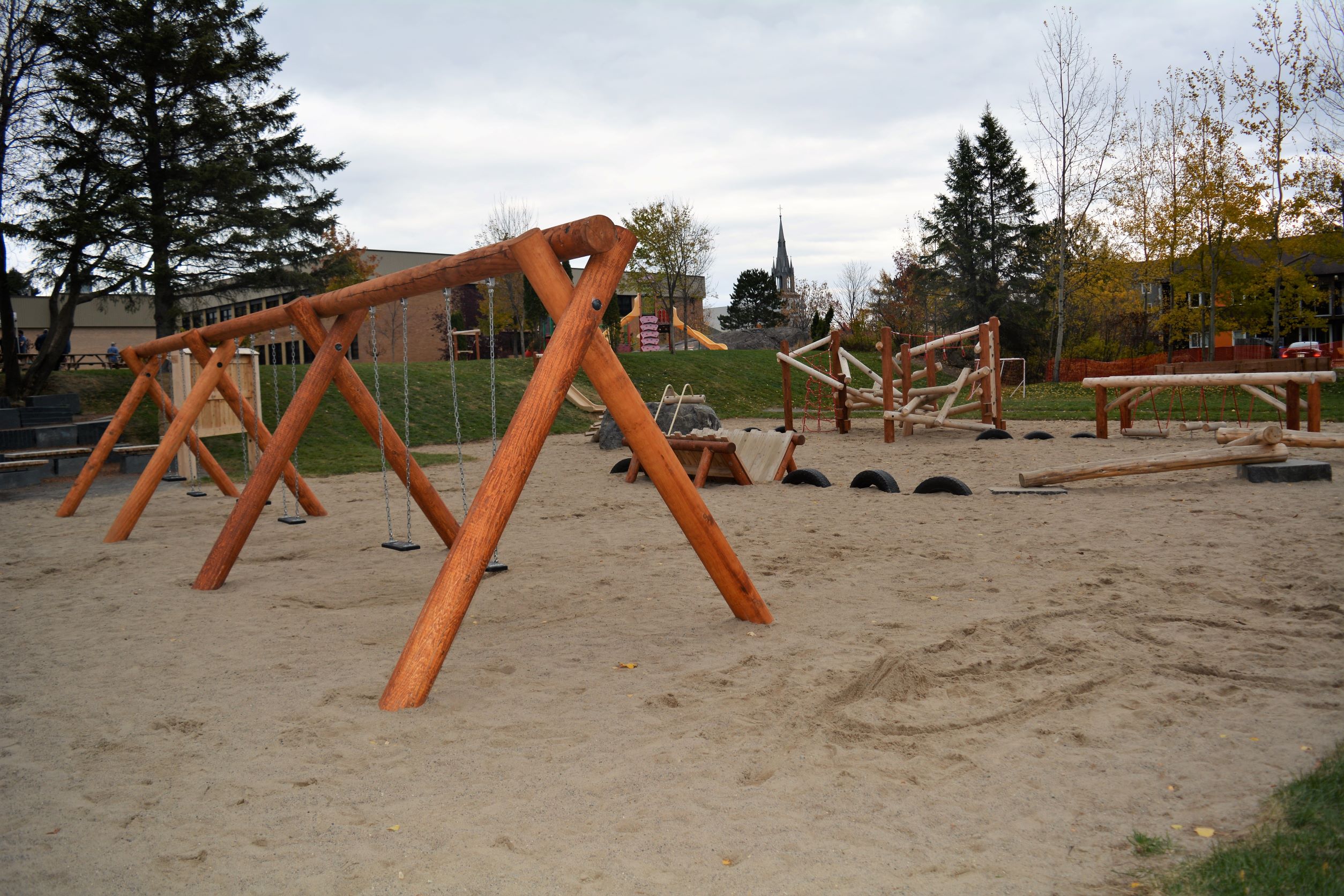 Le bois est largement mis en valeur pour la nouvelle cour d’école.